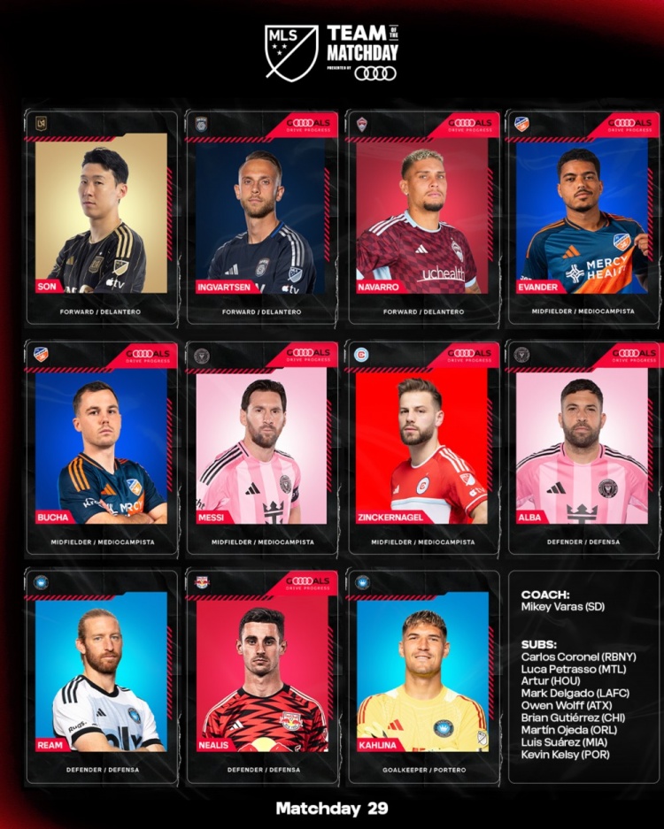 天天盈球-美职联第29比赛日最佳阵:梅西、孙兴慜、阿尔巴在列